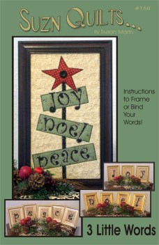 It’s made using fusible applique. The houses are two different sizes and the larger one I’ve also shown appliqued on a tea towel. I love making quick little projects like applique tea towels for gifts. Like yesterday’s pattern, 3 Little Words, this quilt and towel were also featured at one of my holiday open houses. I recently visited a friend of mine and she had one of these towels hanging in her kitchen. I had stopped in unannounced at Vi’s house to give her some Christmas baking dishes for our upcoming smorgasbord bazaar for church. so I know she didn’t hang it on my account! That got me thinking I needed to turn this design into a pattern too.