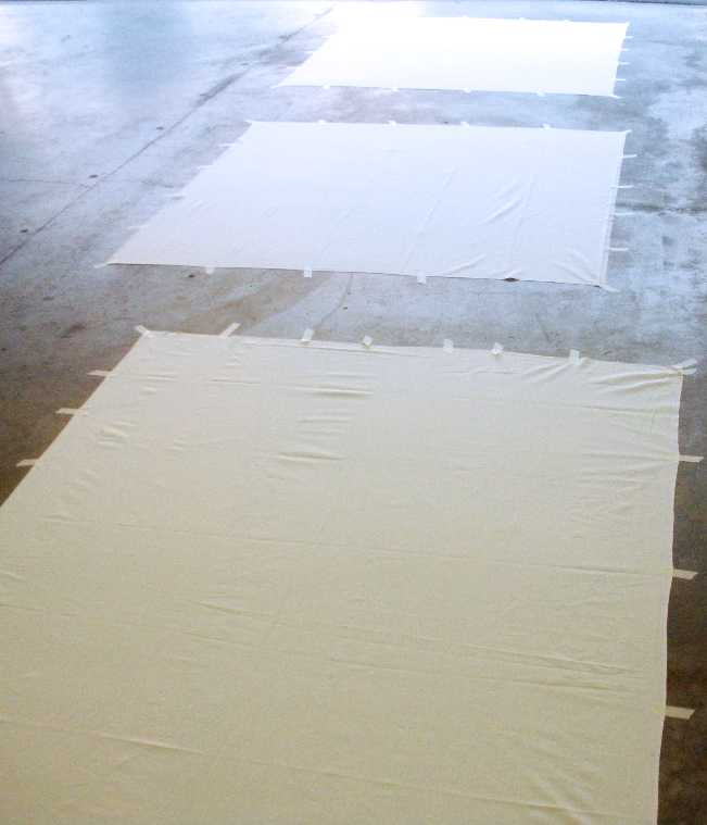 I first taped the backing fabric wrong-side-down in my (freshly swept) garage.