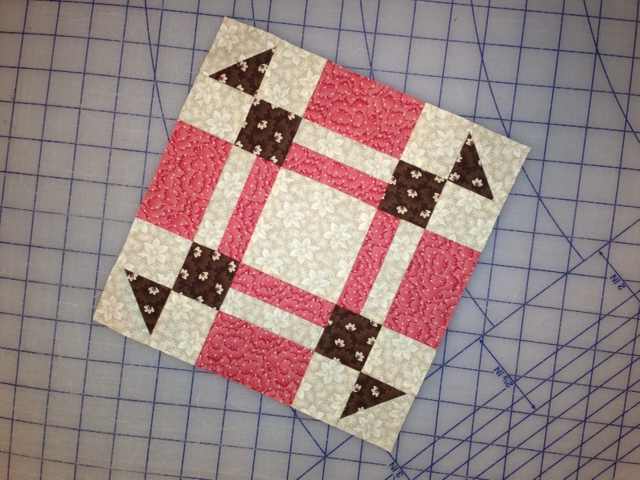 I like the added dimension that the pink stripe fabric gave this block.