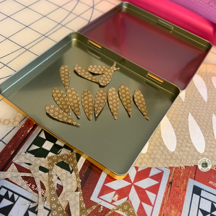 Next, to glue the tiny leaves to the 6 finished blocks.