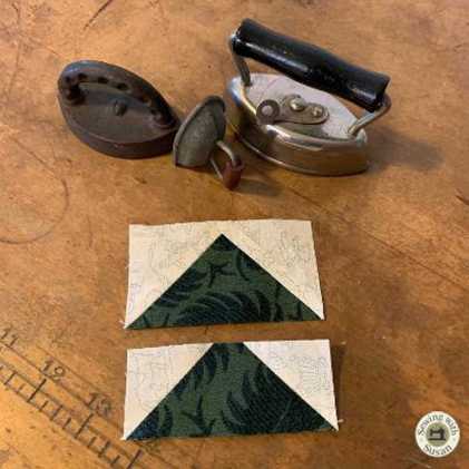 Sew the 1″ black square between the 2 cream 1″ x 1 3/4″ rectangles.