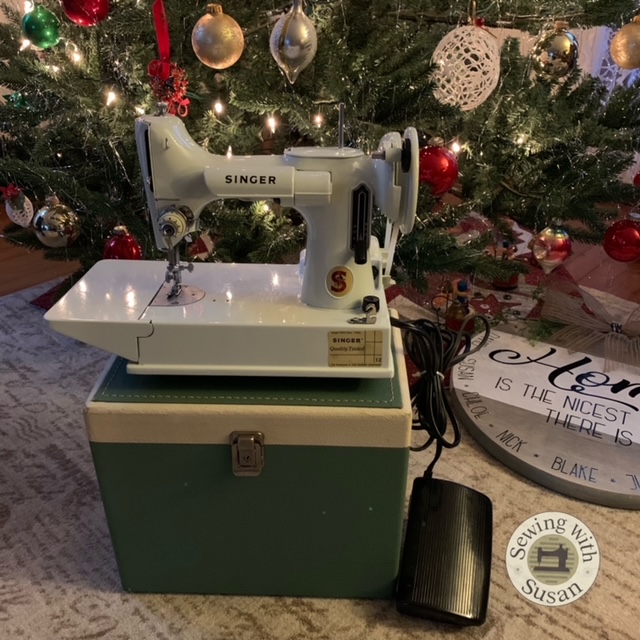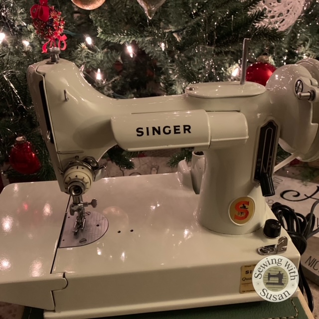 My original quilt design had a black sewing machine, but for Christmas a few days ago I received the most beautiful Featherweight machine that I’ve seen to date from my DH. When choosing fabric I decided to make this quilt block to commemorate my newest Featherweight machine.