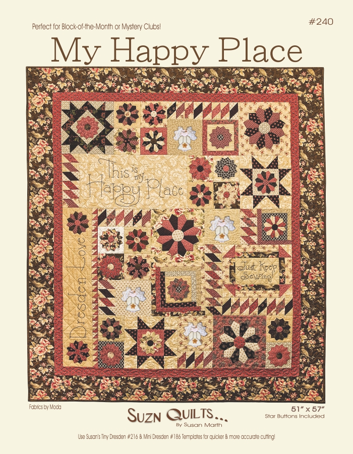 You can see how I made it here. It’s not hard but you will need to practice. Having the right tools is key, in particular Apliquick Bars & small glue sticks for this sewing machine but also paper circle cutters & other tools for the little Dresden plates.