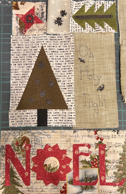 Much better with the Tilda red polka dots in the corner! & by turning some of the flying geese, it made a home for the little “We Wish You A Merry Christmas” plaque.