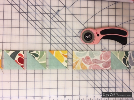 I was amazed that the pressed half-square triangle was exactly 2 1/2″!