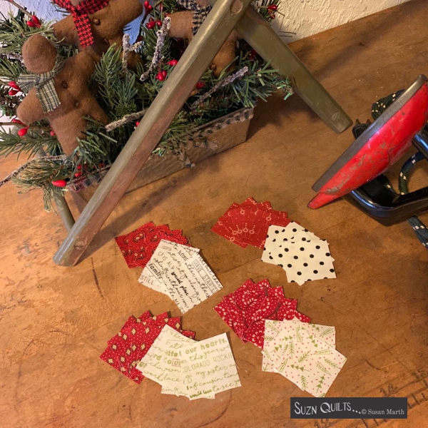 Next, to glue the tiny leaves to the 6 finished blocks.