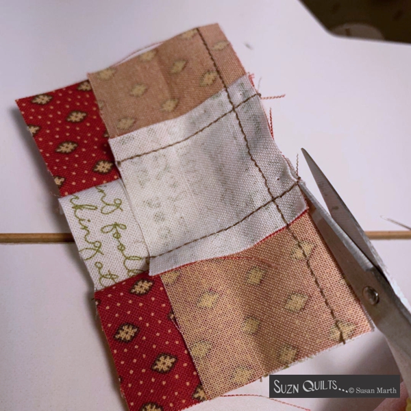 Trimming seam allowances & gluing.