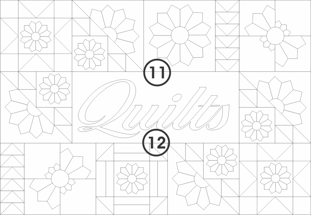 I did start the fabric selection with the “Quilts” block,
