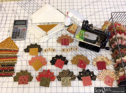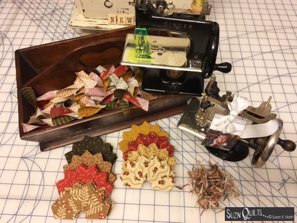 Here are all of the tiny Dresden blocks sewn into star blocks: