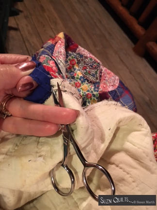 Instead of putting a wide binding on it like the previous “quilt preservationist” did,