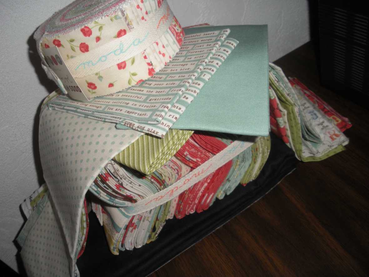 a new Moda collection, Odds & Ends by Julie Comstock. Lovely colors & cute designs. Yes, it’s still in its shrink-wrap. I’m not allowing myself to remove it until I’m ready to sew.