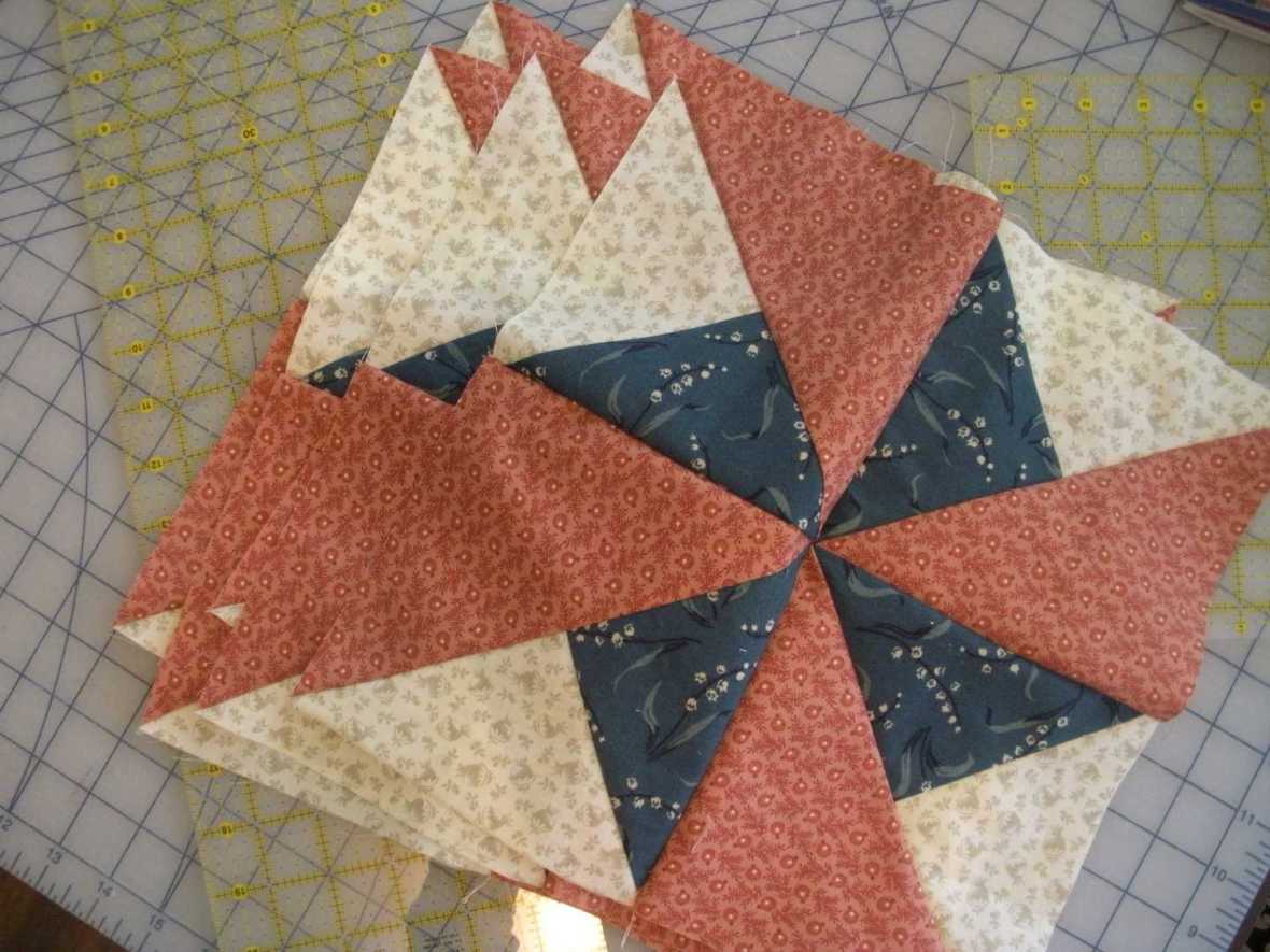 The fun thing about Thimbleberries patterns is that they are quick and easy. The 6, 12-1/2″ blocks are already sewn. I need to cut the sashing and assemble the top next.