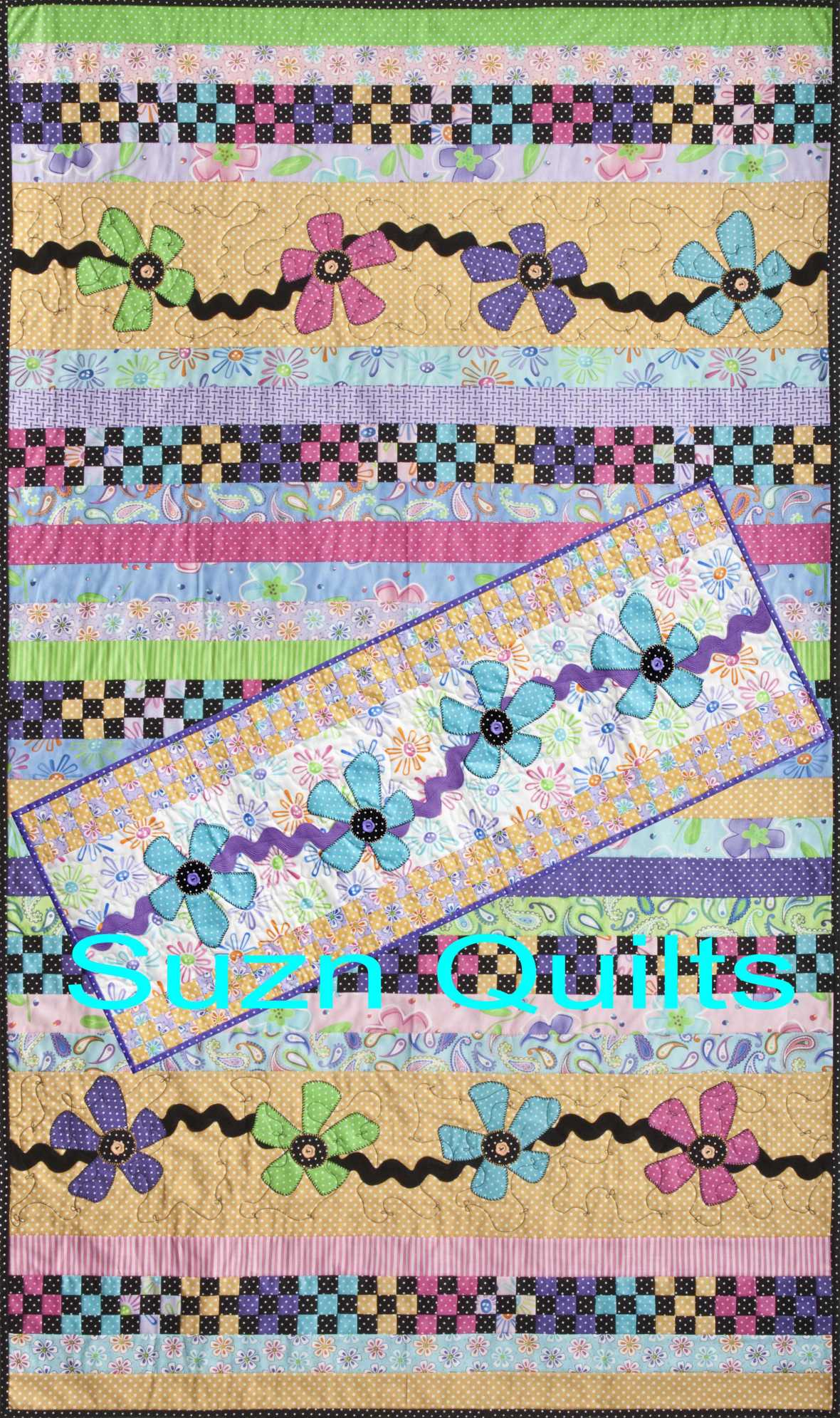 Bright & cheery for spring don’t you think? It’s been in the works since BEFORE I got back from Salt Lake City’s spring market in May. I love the way it turned out with the Amelia fabrics by Me & My Sister for Moda. The fence posts and the “grassy” area between the fence posts are sewn into strips then the strips are sewn onto the foundation. Next make and fuse the applique. I love the cricket, how ’bout you?
