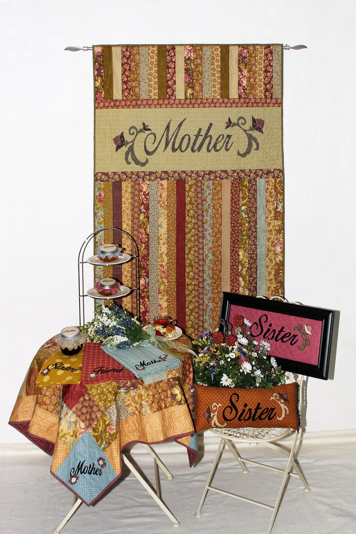 Some of the quilts have fusible applique and therefore require a bit of stitching to add before the binding. This stitching acts as more quilting.