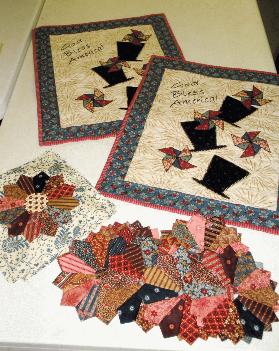 If you check out my website you’ll see a tab for “Quilt-as-you-go”. These are all lap quilts that I’ve created using my own technique, a form of foundation piecing. These are a few of them: