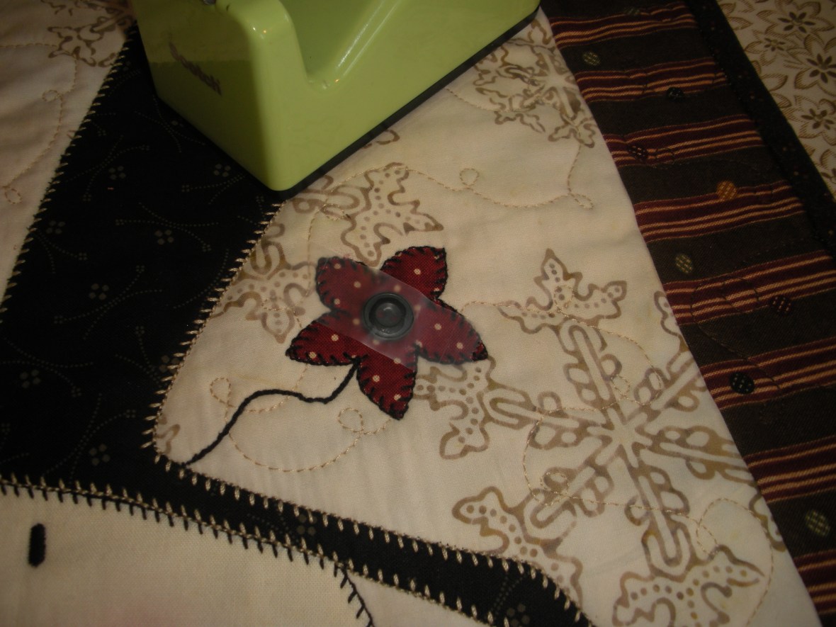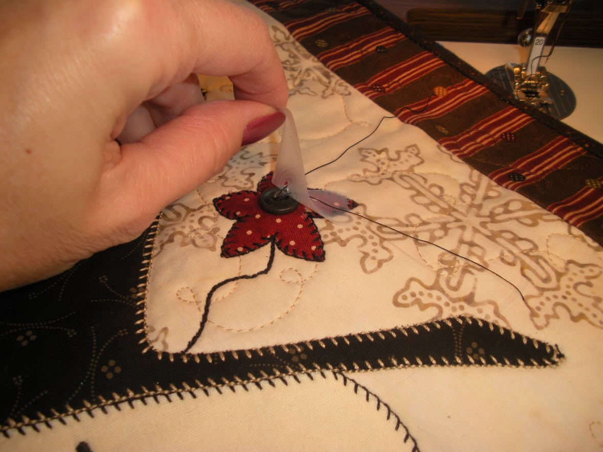 Quilters are constantly commenting on how I get so much done. Or they see my samples and are blown away by the details and precision and think that the miles of buttonhole stitch on my applique (my very favorite of stitches) is done by hand. Well, as most of you know, it’s hard to take such a compliment without telling on ourselves. It seems my standard issue reply is always “Oh no, it’s all by machine. I even sew on my buttons by machine.” To which the reply is mostly, “No way!” Well, yes way, and today I’ve decided to illustrate just how easy this is.