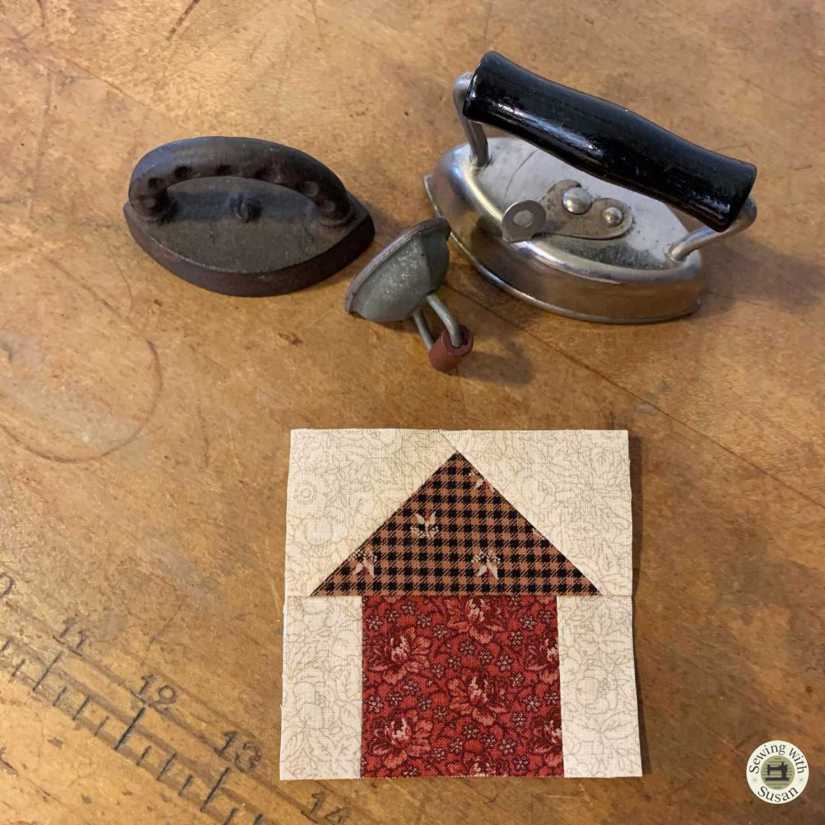 - 2 sq’s. each cut 1 7/8″ to make 4 half-square triangles 1 1/2″ unfinished