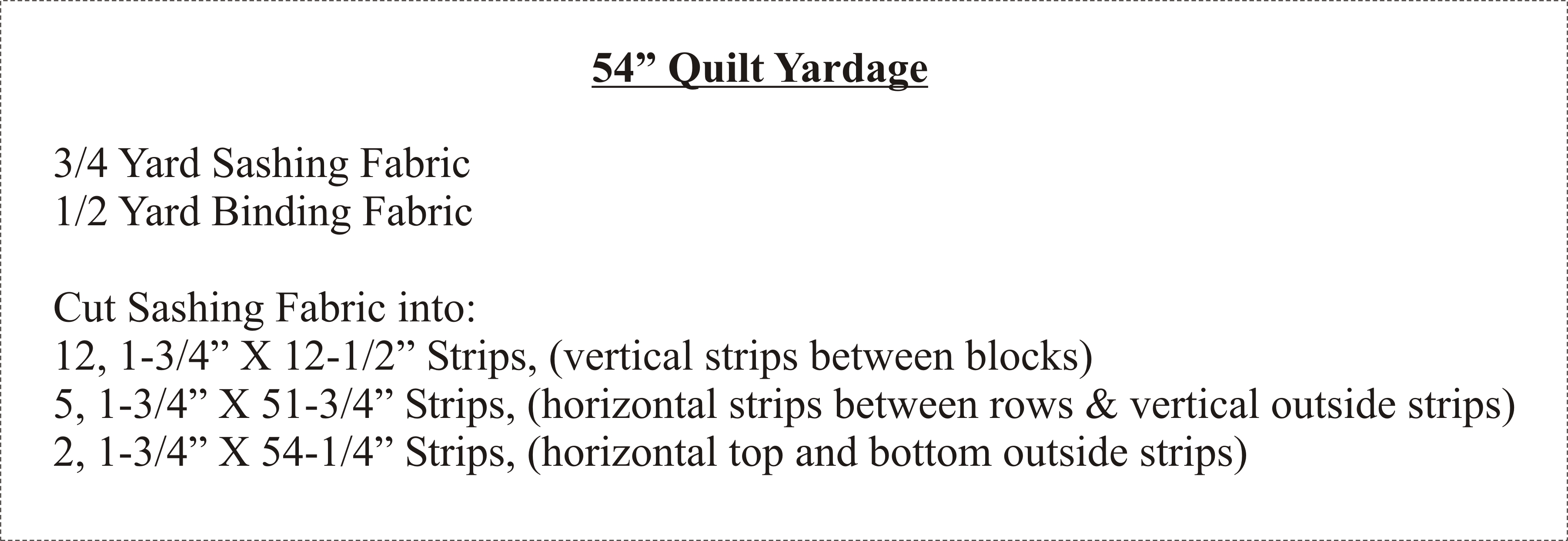 To make this quilt, first make 16 blocks, instructions from magazine, then add: