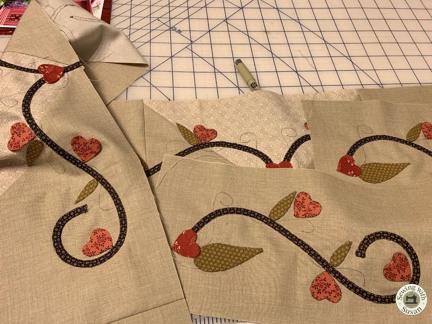 Next, to glue the tiny leaves to the 6 finished blocks.